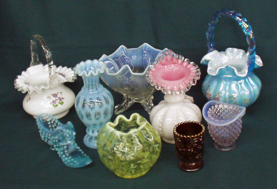 We have a large selection of antique and vintage glassware by Heisey, Fostoria, Fenton, Cambridge and Waterford. The inventory includes depression glass, carnival glass, and early American pattern glass in items such as dishes, stemware, vases, figurines, decanters, and oil lamps.