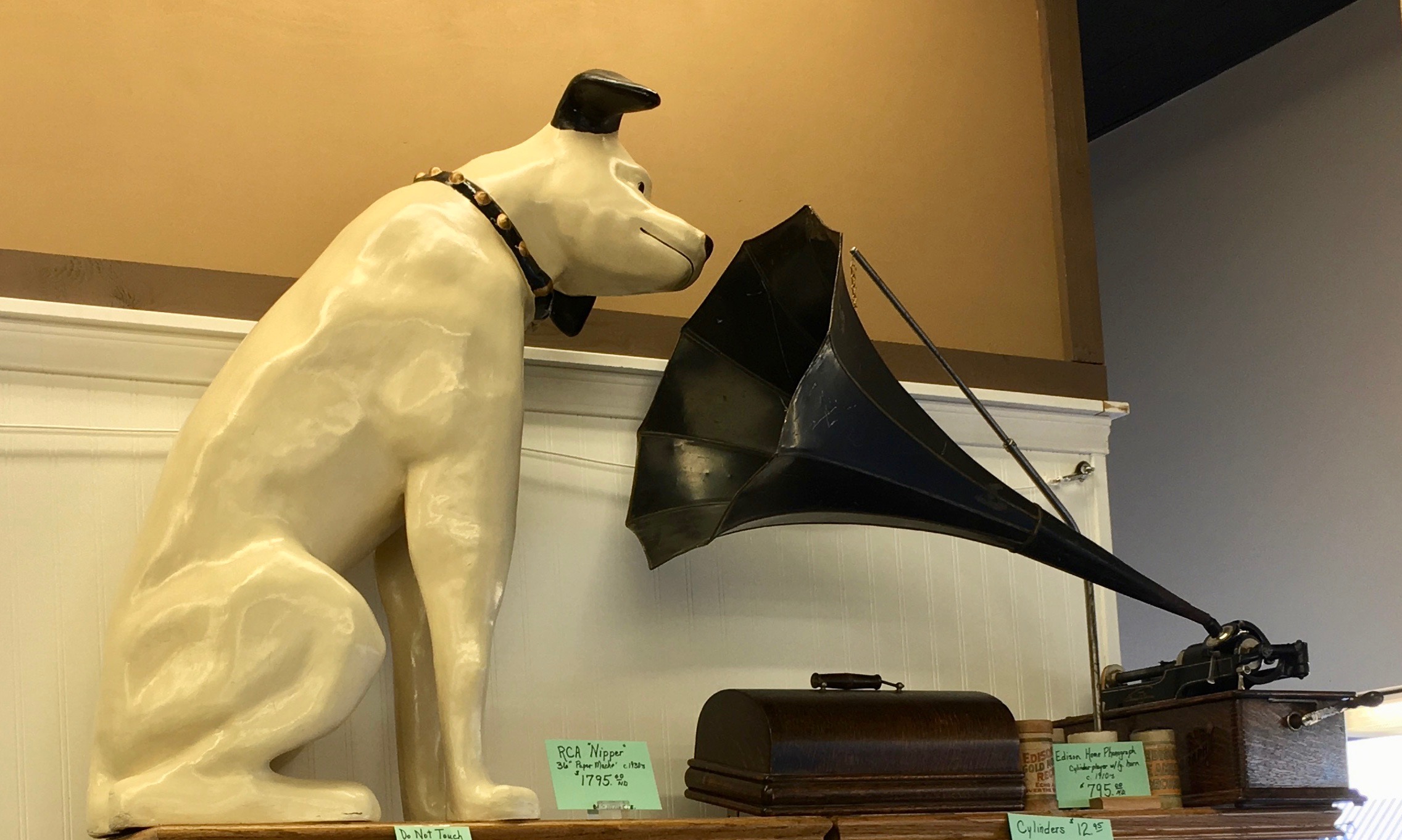 Cameras, photographic equipment, phonographs as well as famed prints, paintings, and figurines from numerous artists (Fox, Parrish, Thompson, Gutmann) are available. Also available are bubble glass frames, vinyl records, and Victrola & Edison phonographs.
