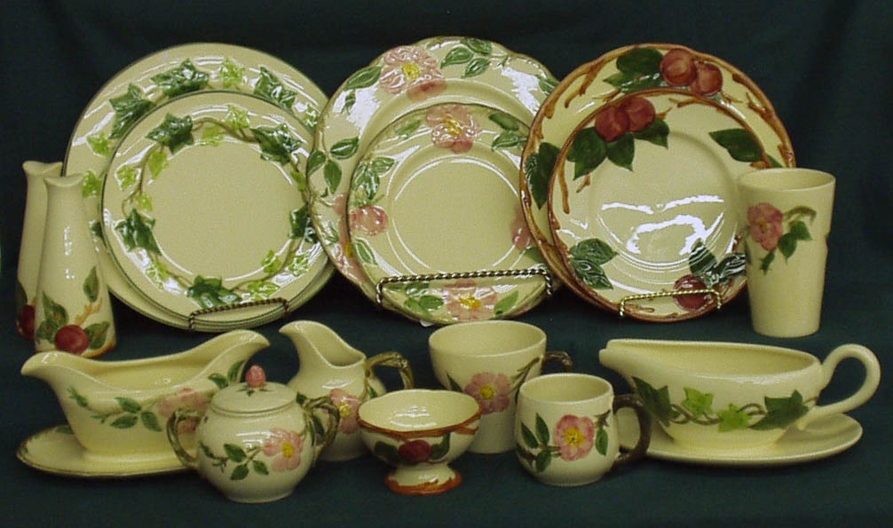 Our great assortment of antique and collectible pottery and china including Roseville, Hull, Weller, Bauer, Rosemeade, Shawnee, R.S. Prussia, Abingdon, Red Wing, Homer Laughlin, Royal Albert, Lenox, Noritake, Franciscan, and Shelley. Available are vases, cookie jars, crocks, planters, dinnerware, wall pockets and much more.